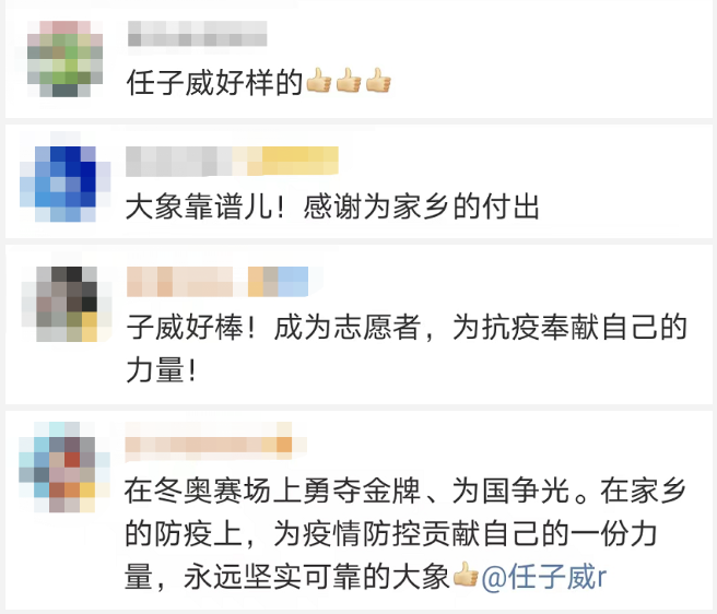 网友纷纷为任子威竖起大拇指,“子威好样的”“坚实可靠的‘大象’”。