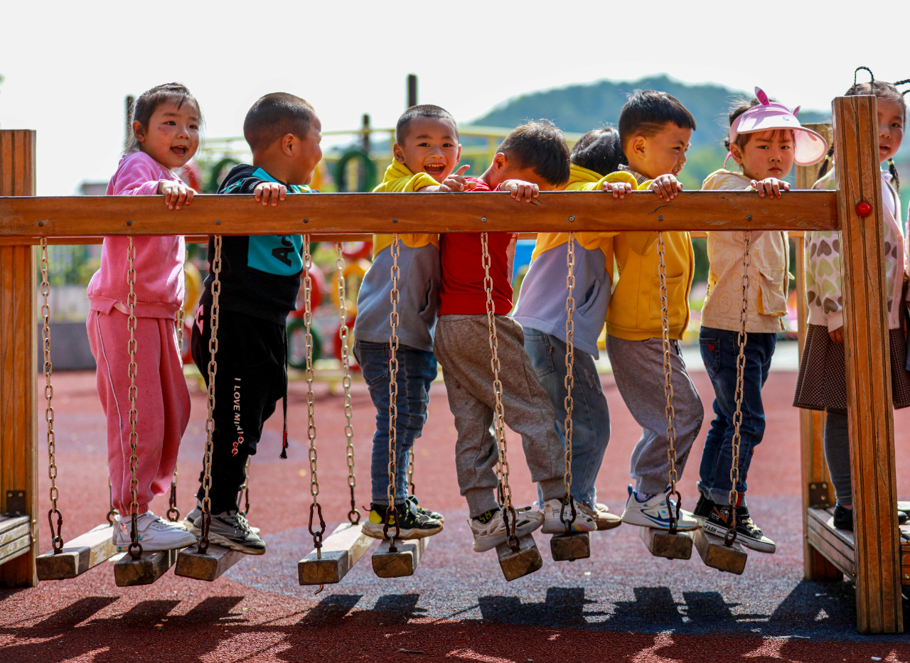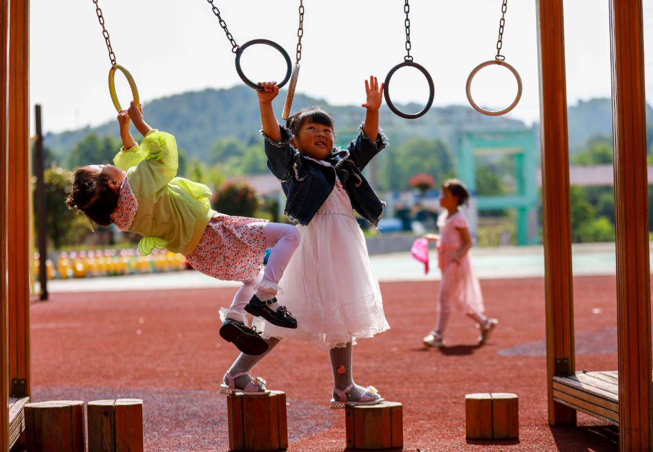 5月10日,贵州省黔西市甘棠镇中心幼儿园的小朋友进行过吊桥分组比赛。