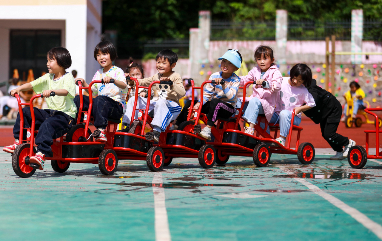 当日,贵州省黔西市甘棠镇中心幼儿园的小朋友进行骑车、过河、钻隧道、手推车等比赛。近年来,黔西市甘棠镇中心幼儿园出台措施规范幼儿园管理,严禁超前教育现象发生,幼儿园举办了丰富多彩的体育活动,把趣味、竞技、娱乐融入活动中,使孩子们享受运动的乐趣,提高身体综合素质。