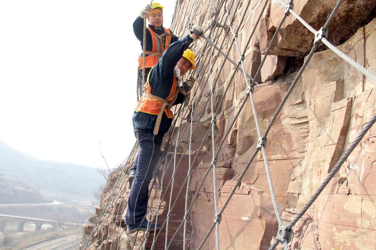 比起高空清理危石,穿行于崇山峻岭间要克服的重重困难更让扫山工们备感艰辛。长年累月地进行“扫山”作业,让队员们总结提炼出“望、标、量、扫”山体排危整治法。流水线式的高效作业模式,帮助他们成功排除了许多山体危石。