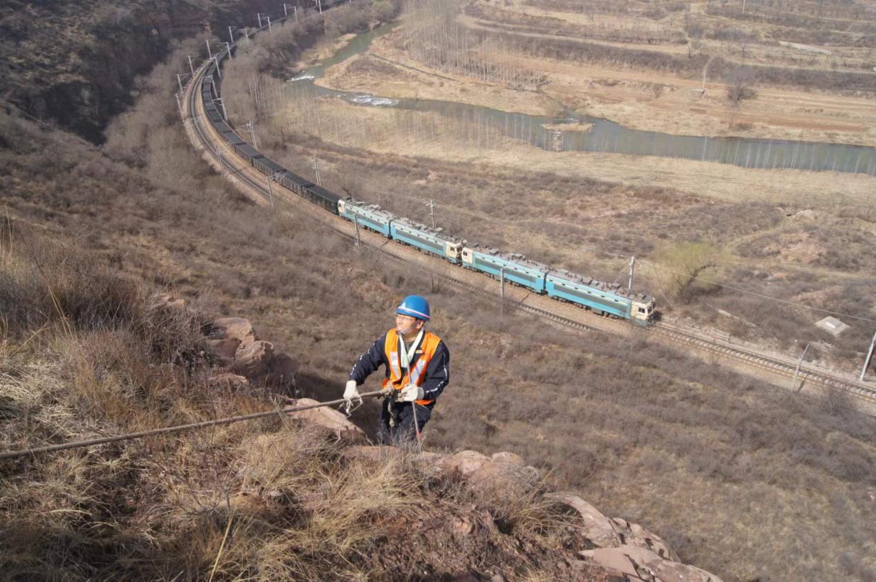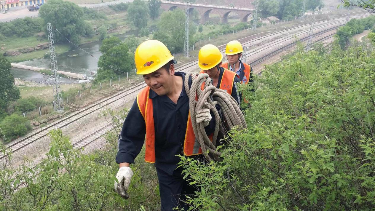 与大山为伴,常年奔波于高山深谷中,行走在悬崖峭壁上的扫山工,用自己的生命默默地守护着铁路线的平安与顺畅。(图片由太原南工务段崔明明提供)
