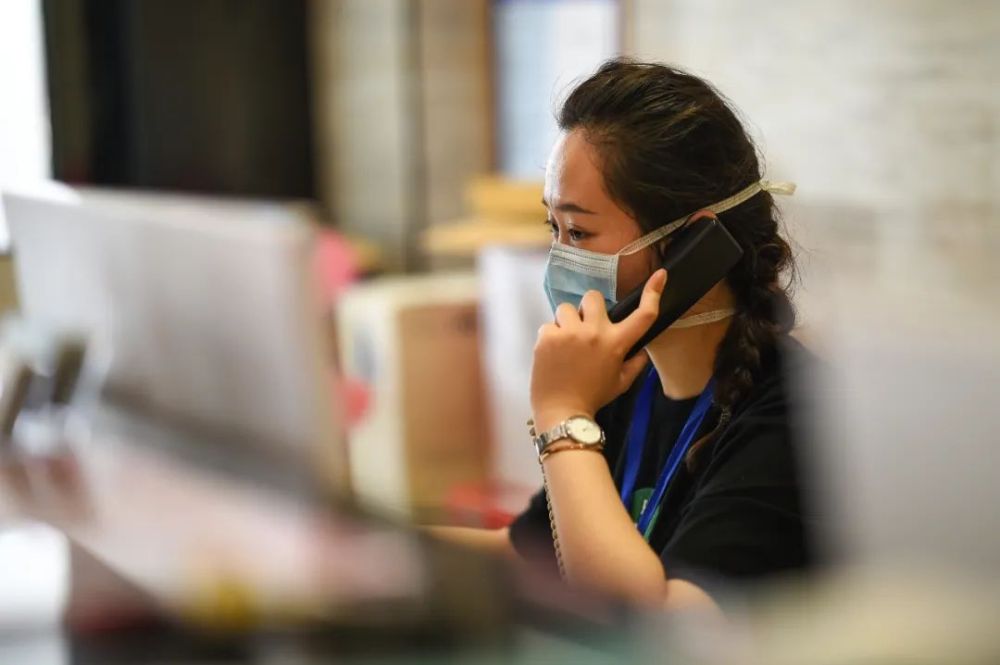心理疏导工作者接听热线电话