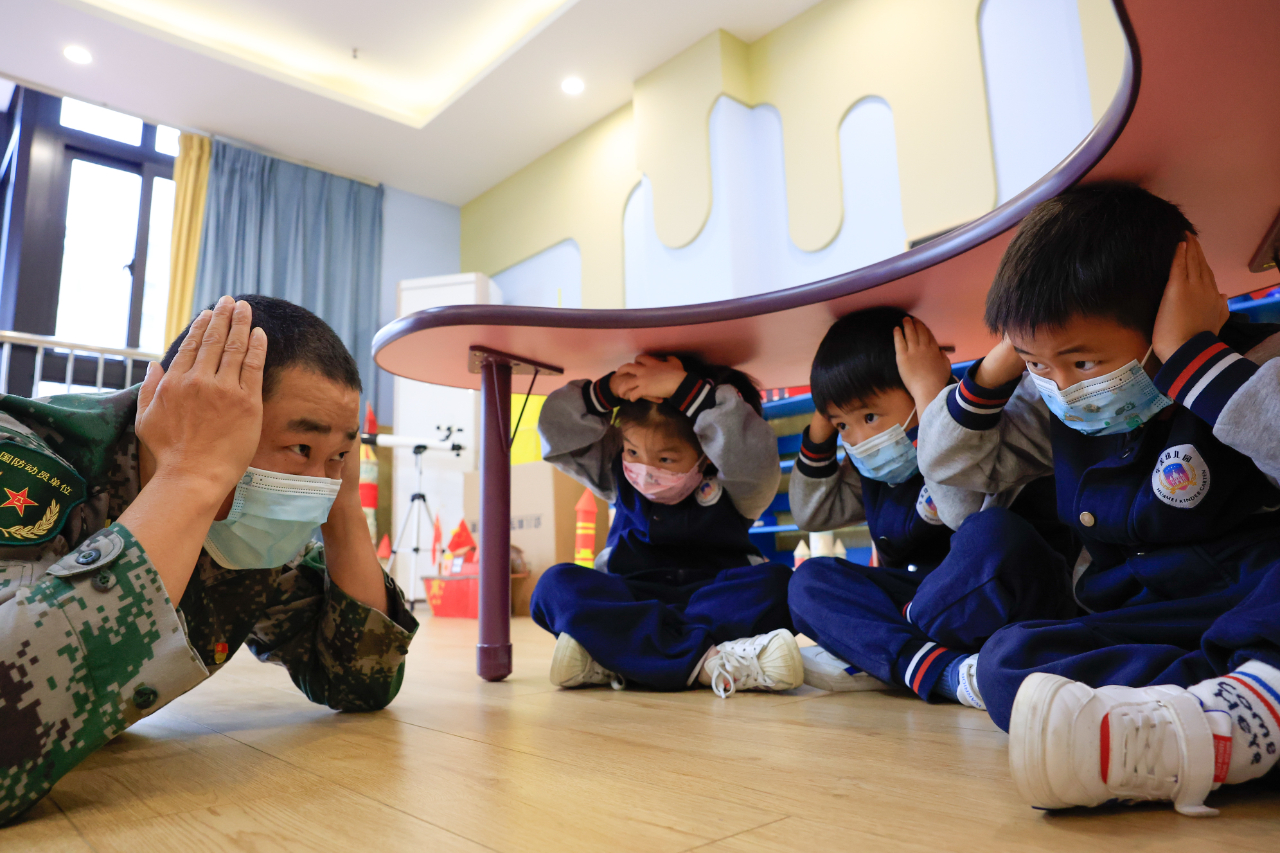 5月11日,在全国防灾减灾日来临之际,合肥庐阳经济开发区武装部、丽水社区联合华美幼儿园开展“512防灾减灾应急演练进校园”主题活动,活动通过讲解地震知识,传授逃生要领,开展逃生演练,以增强幼儿安全防范意识和自我保护能力。今年5月12日是我国第14个全国防灾减灾日,主题是“减轻灾害风险,守护美好家园”。赵明 摄