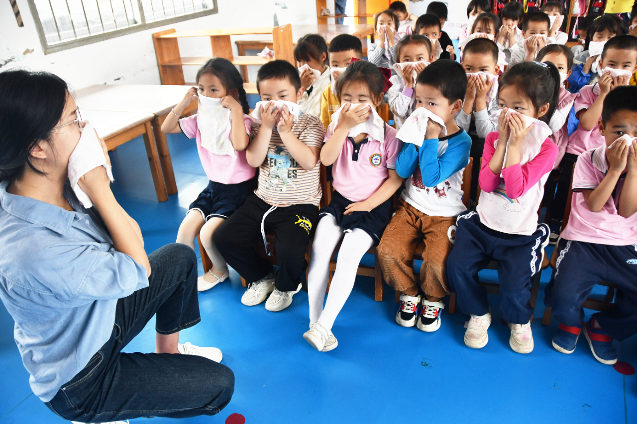 5月11日,湖南省永州市江永县中心幼儿园老师在向孩子们讲解防震减灾知识。连日来,该县各中小学幼儿园校开展应急避险教育活动,普及防灾减灾知识,以强化学生们的安全意识,提高自救自护能力,迎接第14个全国“防灾减灾日”到来。 田如瑞 摄