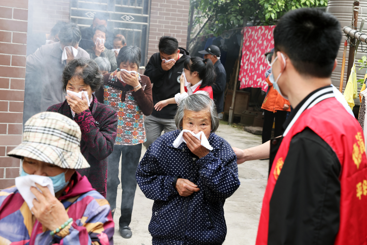 5月11日,浙江省湖州市德清县乾元镇东郊社区一幢出租的自建房,乾元镇社会治理中心工作人员引导群众进行逃生演练。当日,浙江省湖州市德清县乾元镇开展“防灾宣传到自建房 迎全国防灾救灾日”活动,向群众宣传房屋不得添加楼层、破坏承重墙等,传授消防安全、防灾减灾、应急逃生等知识,消除自建房安全隐患,保障群众生命财产安全。倪立芳 张燕 摄