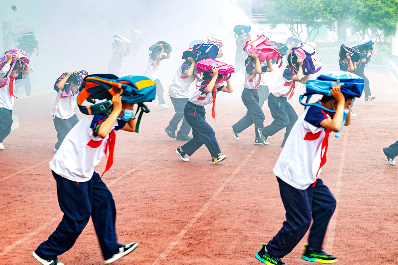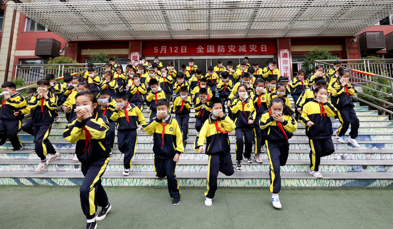 5月9日,浙江省湖州市长兴县吕山乡中心小学,学生们正在参与紧急疏散演练。“5.12”全国防灾减灾纪念日之际,浙江省湖州市长兴县吕山乡中心小学举行防灾减灾活动,全校700多名师生通过避险演练、疏散演练、普及防灾减灾和自然灾害的自救知识等环节,有效增强了国防观念和人防意识,提高了防灾减灾能力。王徐超 摄