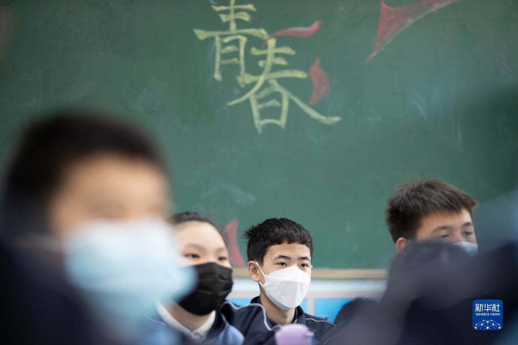 5月12日,在哈尔滨市第六十中学,学生在教室上课。