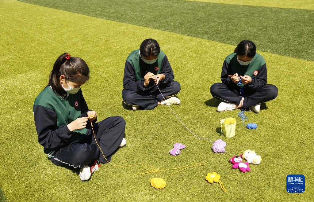 5月13日,邢台市第十中学学生在参加编织比赛。