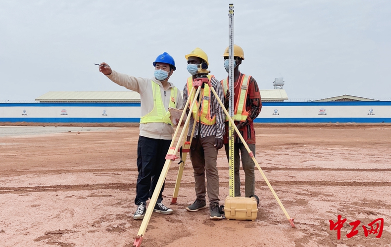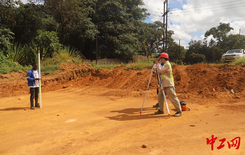 测量人员头顶烈日开展现场测量工作 中国土木工程集团有限公司赞比亚公司 曲瑞娇 摄