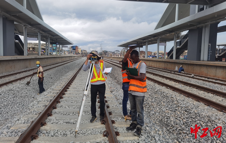 测量人员进行校验 中铁十九局集团二公司 高智勇 摄