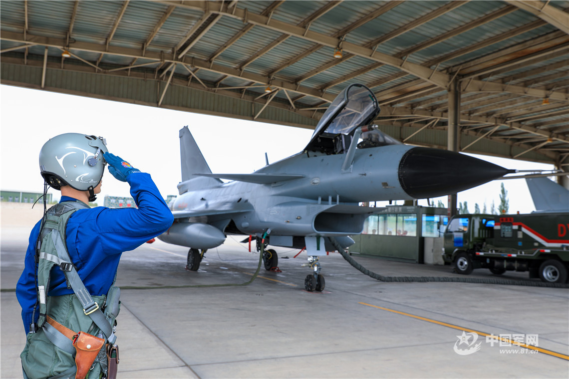 飞行员向战机敬礼。靳慧东 摄