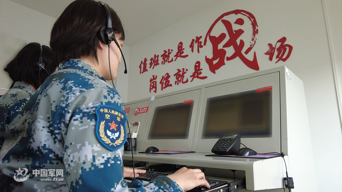 通信女兵值守岗位。李政昊 摄