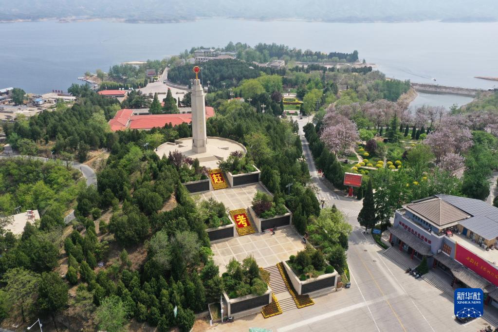 河北省平山县西柏坡纪念塔(2021年4月26日摄,无人机照片)。 新华社记者 朱旭东 摄
