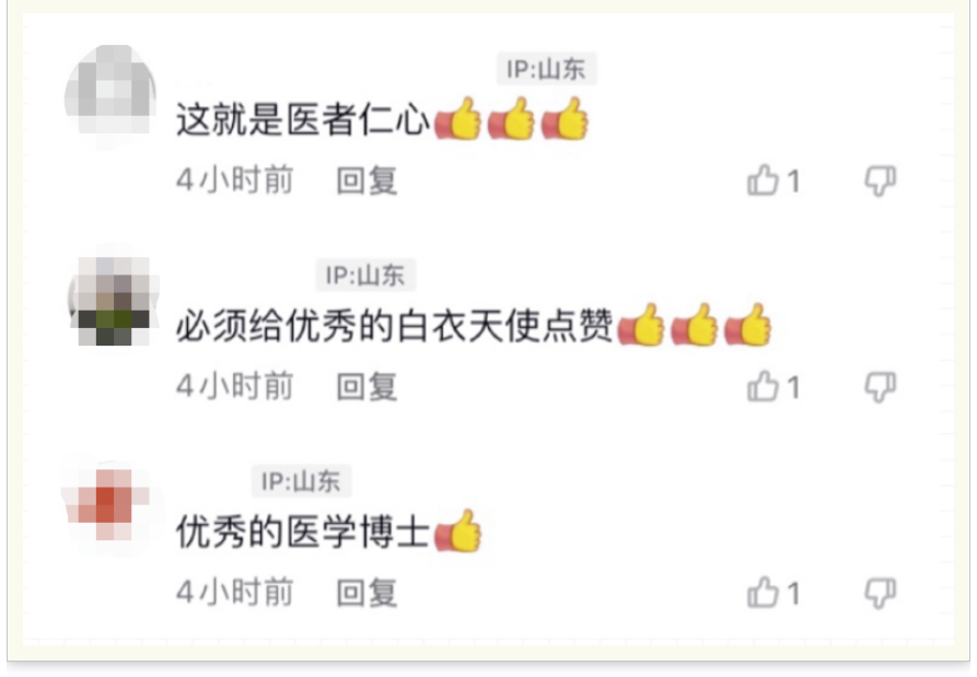 由于张晓斐施救及时,为老人赢得了宝贵的急救时间,最终老人成功脱险,视频被发布到网上,尤其了解到张晓斐的医学生身份后,网友纷纷为她点赞。“这是优秀的医学博士!”“动作标准、临危不惧,真天使下凡!”“不是所有人都有勇气挺身而出,为你点一个大大的赞!”