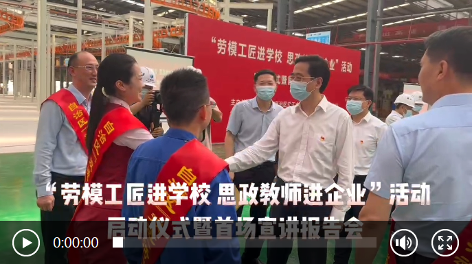5月26日下午,由广西壮族自治区总工会、自治区教育厅共同主办的“劳模工匠进学校 思政教师进企业”活动启动仪式暨首场宣讲报告会在广西建工集团建筑机械制造有限责任公司生产车间举行。