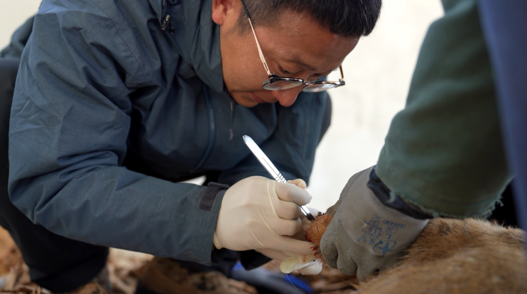 赵岩在救助受伤的野生动物(1月12日摄)。新华社记者 司晓帅 摄