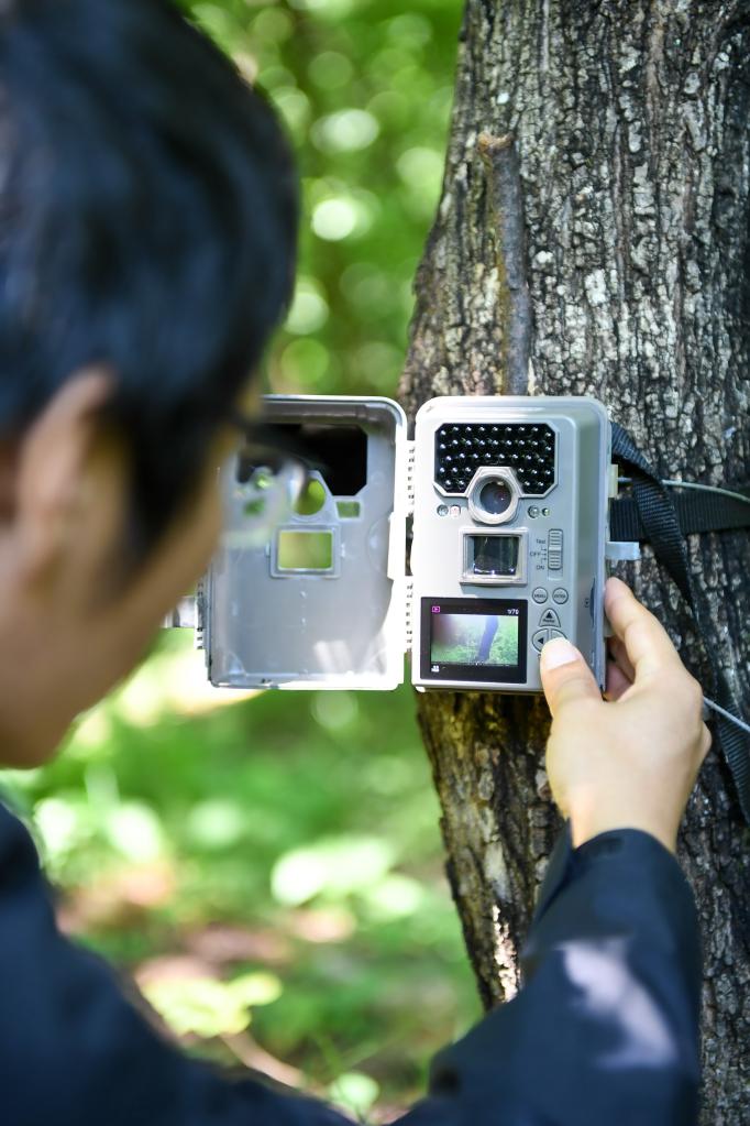 冯利民在东北虎豹国家公园内的森林里查看智能红外相机(2020年7月21日摄)。新华社记者 颜麟蕴 摄