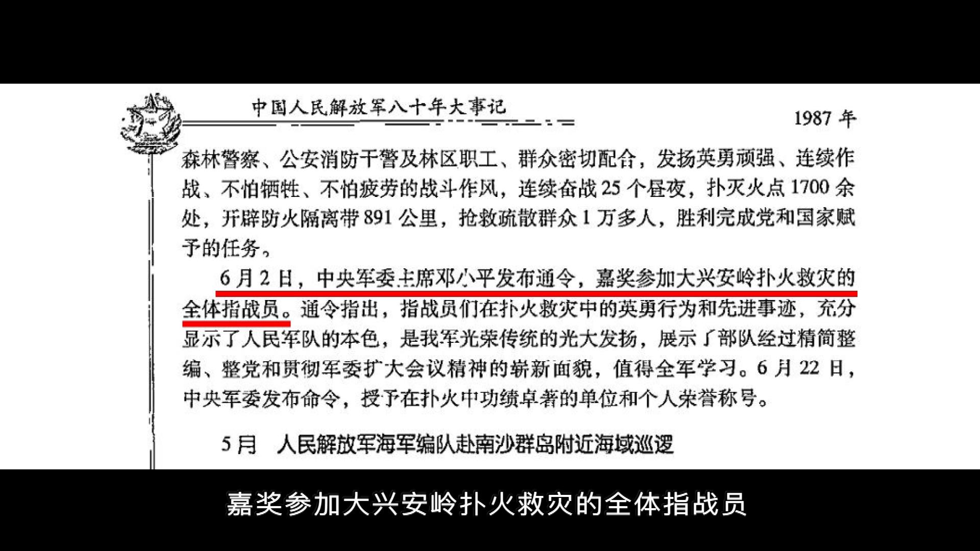 1987年6月2日,邓小平签署通令,嘉奖参加大兴安岭扑火救灾的全体指战员。
