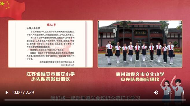 现代快报讯(记者 杜雪迎)2022年5月30日,是江苏省淮安市新安小学少先队员们收到习近平总书记回信一周年的日子。近日,他们向全国少先队员发出“跟着习爷爷的足迹学党史”的倡议。贵州省遵义市文化小学的少先队员们第一时间响应倡议,追寻习爷爷的足迹,打卡遵义会议纪念馆,讲述红色故事,传承红色基因。