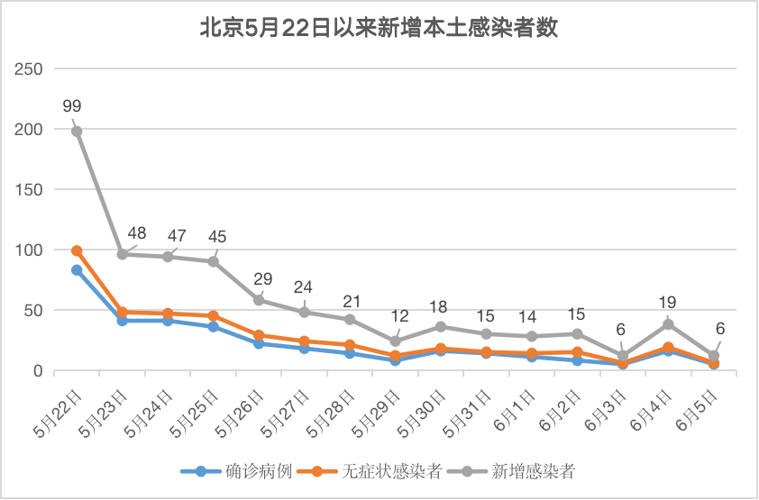 6月5日0时至24时,北京新增5例本土确诊病例(含1例无症状感染者转确诊病例)和1例无症状感染者,无新增疑似病例;无新增境外输入确诊病例、疑似病例和无症状感染者。治愈出院38例。