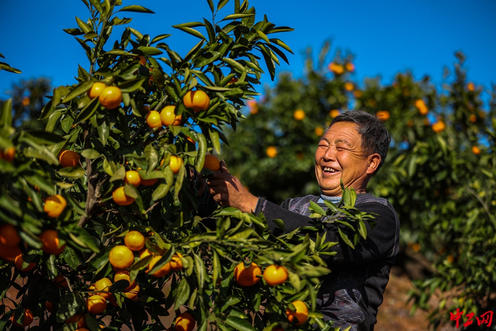 秋天,果园、农田里到处洋溢丰收的喜悦。橘树上点缀着鲜艳可爱、冰甜爽口的橘子,大型收割机在田间穿梭,农民脸上绽放出饱含丰收喜悦的灿烂笑容。 刘江 摄