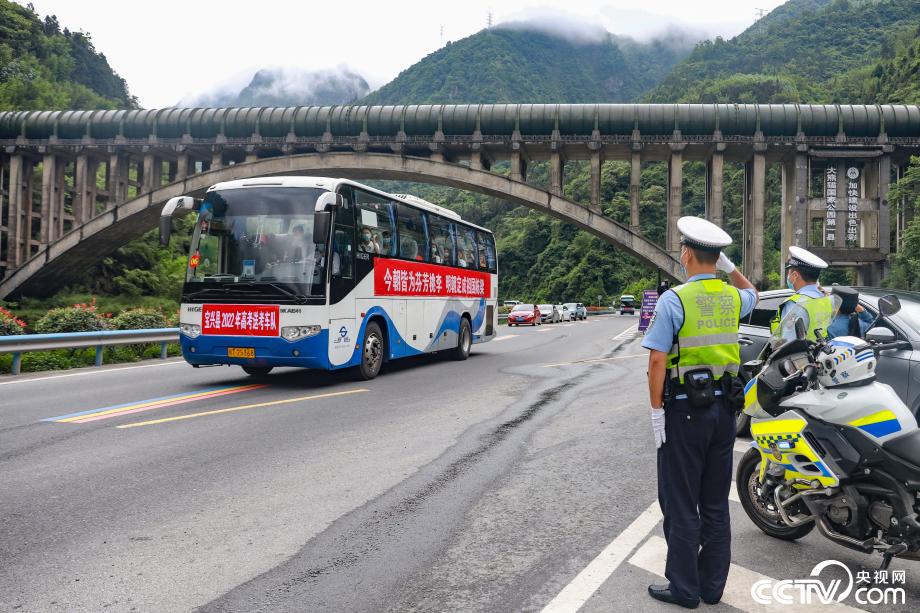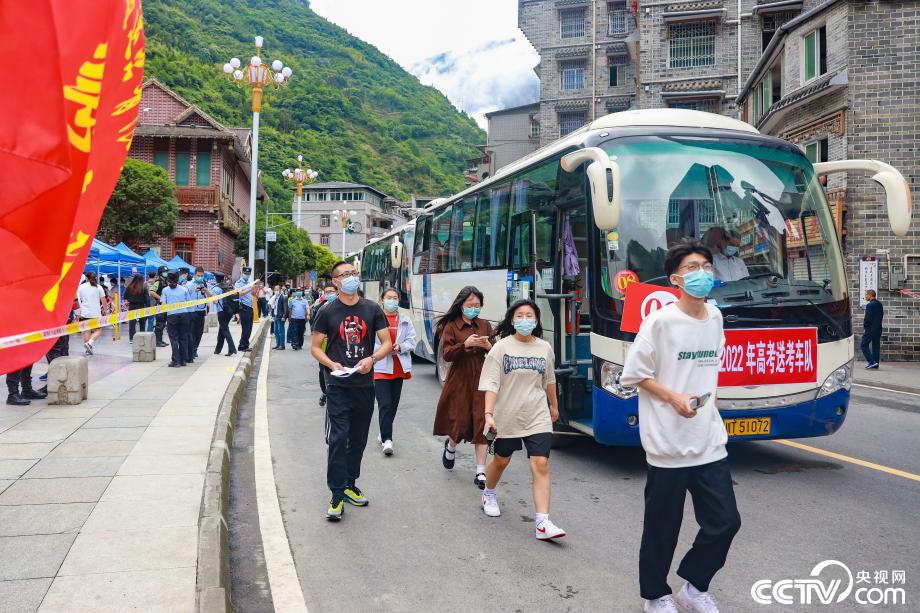 2022年6月4日,四川雅安,“6.1”芦山地震灾区宝兴县329名高考考生和113名考务人员统一乘车,前往天全县参加2022年高考。