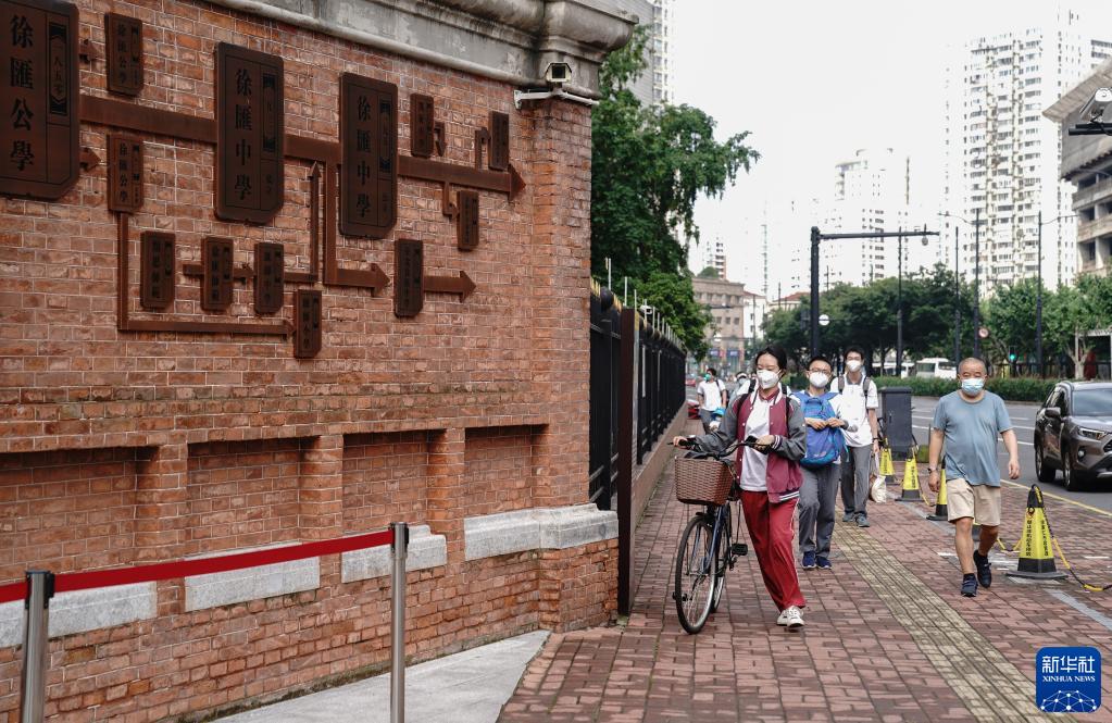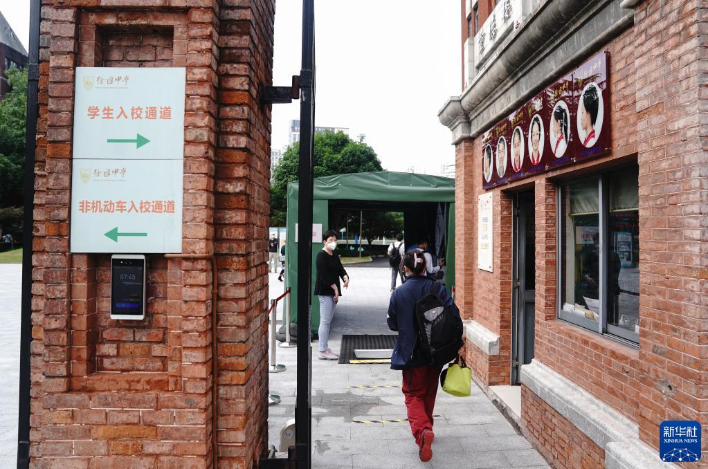 6月6日,上海市大同中学的高二、高三年级的学生在校门口分流入内。