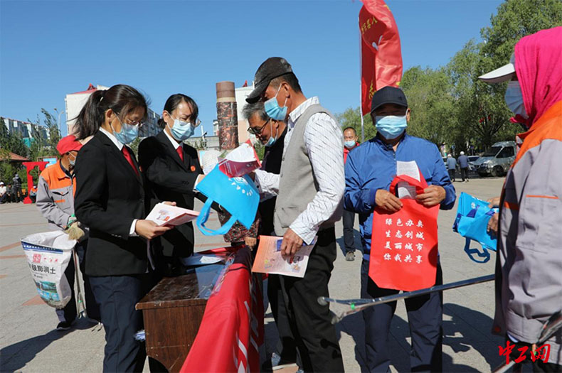 中工网讯 6月5日,为贯彻绿色低碳发展理念,河北省张家口市康保县生态环境局工会联合县人民法院、城管执法局,举办“世界环境日”——“共建清洁美丽世界”主题宣讲志愿服务活动。
