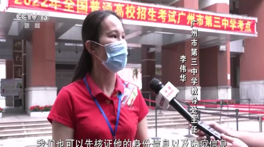 广州市第三中学教导处主任 李伟华:如果学生忘记携带身份证、准考证,我们也可以先核证他的身份信息以及防疫信息,先让考生按照考试时间准时参加考试。