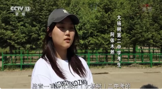 大杨树第二中学考生 阿依木然:在自己的学校考试,就觉得非常放松,毕竟一直考试都在(大杨树)二中考的,然后这次如果高考在这儿,心态可能会没那么紧张。