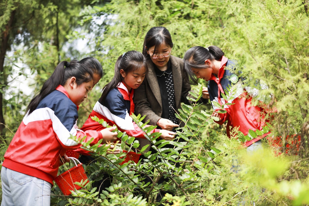6月14日,小学生走进贵州省黔西市甘棠镇毕架村小树林内开展自然课。