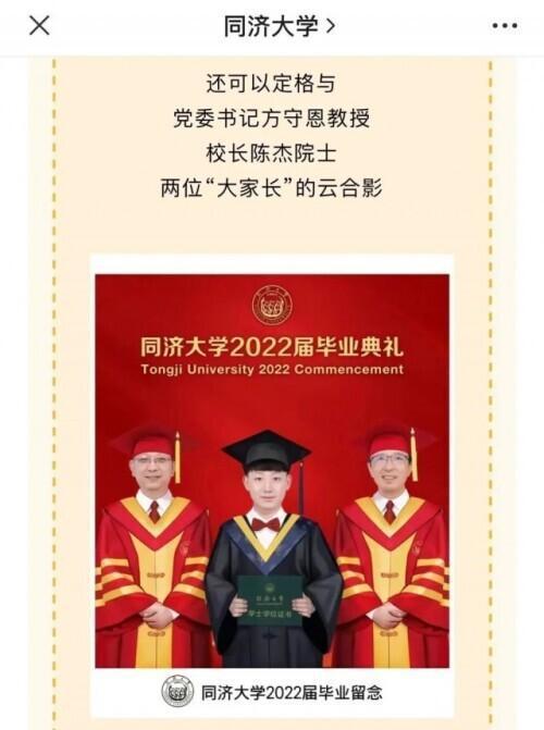 近日,同济大学上线“云毕业照”服务。通过这份毕业惊喜,同学们还可以和书记校长合影。