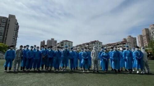 在校园核酸采样时,他们主动报名,穿上厚重的防护服在烈日下奔走,维持秩序。