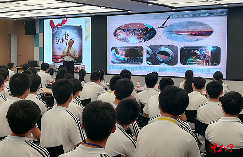 2019年6月12日,来自绍兴技师学院(筹)的百余名师生,共同聆听国务院特殊津贴获得者、浙江省劳动模范、浙江工匠丁卫松所作的《蓝领也能闪金光》宣讲。