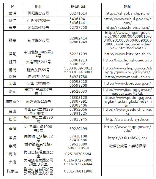 各区招考机构信息一览表
