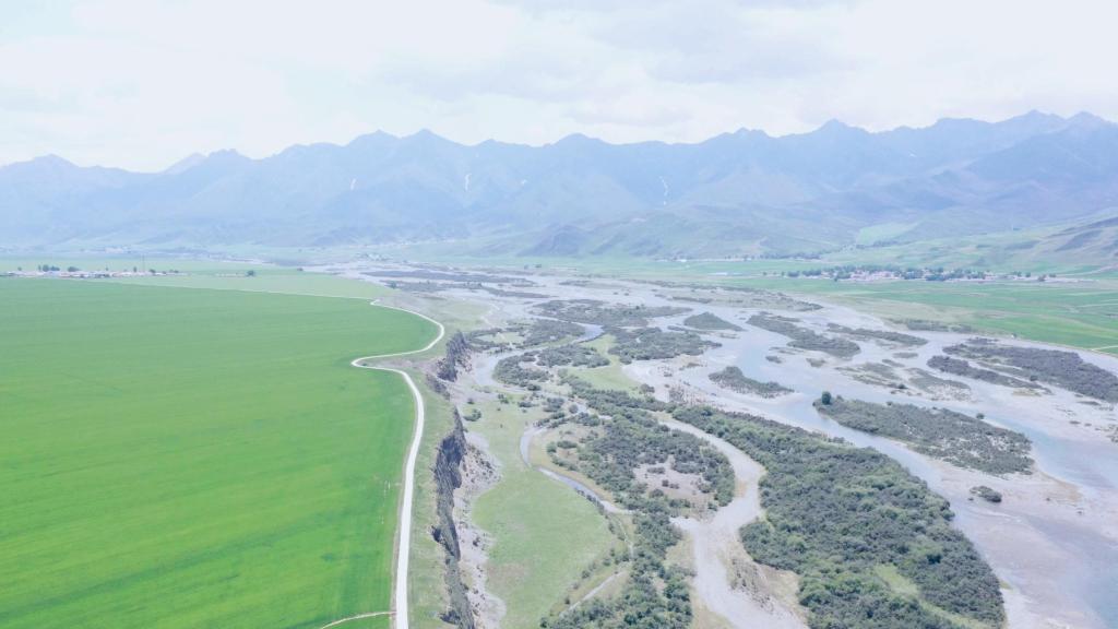 这是6月16日拍摄的大通河门源段现状(无人机照片)。新华社记者周盛盛摄