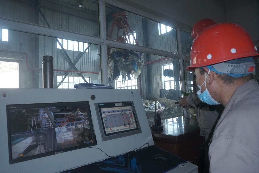 6月16日,门源县泉口镇生活垃圾高温热解处理站的工作人员正在忙碌。新华社记者周盛盛摄