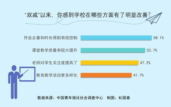 原标题:58.1%受访家长感到作业总量时长得到了有效控制