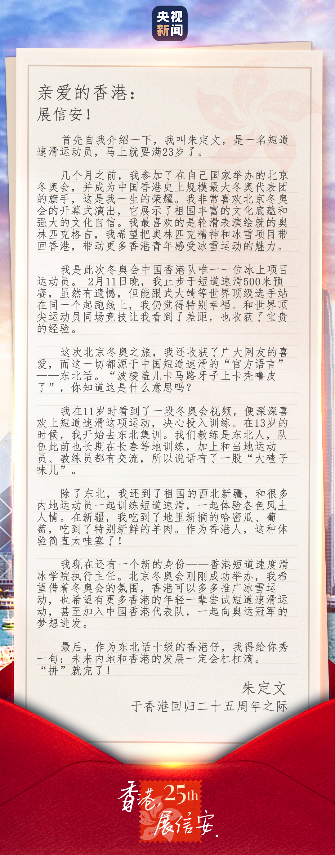 香港回归祖国25周年之际,央视新闻推出《香港,展信安》系列报道。