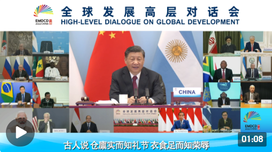 习近平指出,上世纪60年代末,我在中国黄土高原的一个小村庄当农民,切身体会到了百姓的稼穑之难和衣食之苦,他们对美好生活的渴望深深印在我的脑海里。半个世纪后,我重访故地,看到乡亲们吃穿不愁,衣食无忧,脸上洋溢着幸福的笑容。中国古人说:“仓廪实而知礼节,衣食足而知荣辱”。这些年,我走遍中国城镇乡村,也访问过不少国家。我深深感受到,只有不断发展,才能实现人民对生活安康、社会安宁的梦想。