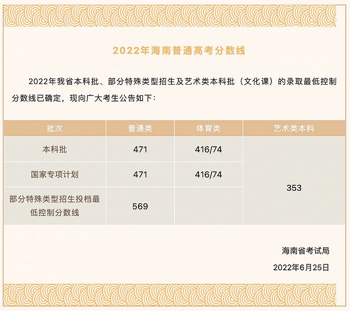 原标题:本科批471分 海南省2022年高校招生最低分数线公布