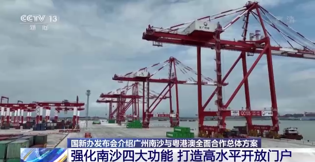 广东省相关负责人在发布会上表示,未来广州南沙将强化四大功能,携手港澳建成高水平的对外开放门户。