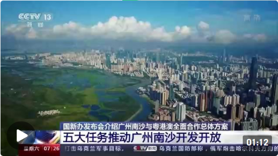 昨天(6月24日)下午,国务院新闻办举行新闻发布会,介绍了《广州南沙深化面向世界的粤港澳全面合作总体方案》相关情况。相关负责人介绍,《方案》是推进南沙开发建设的纲领性文件,提出了南沙开发建设的五大任务。