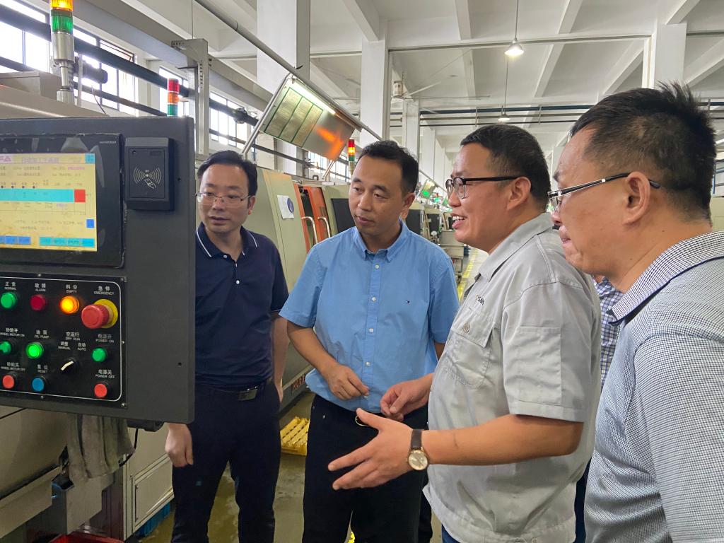 新昌县经信局负责人和数字化服务商到企业车间提供现场服务。受访者供图