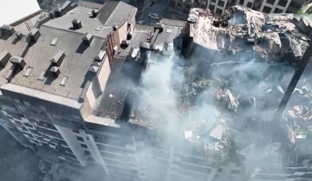 6月26日,乌克兰首都基辅一栋居民楼发生爆炸。(视频截图)