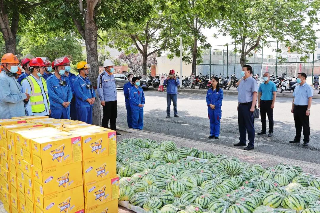 仪式结束后,吉振华带队来到位于孟津区的昊华气体、金达石化两家企业,为一线职工送上防暑降温用品,代表市委市政府、市总工会向奋战在生产一线的企业员工表示亲切问候,并召开座谈会详细了解企业生产经营情况、存在的困难问题,询问职工高温津贴落实情况,听取企业对工会工作的意见和建议。