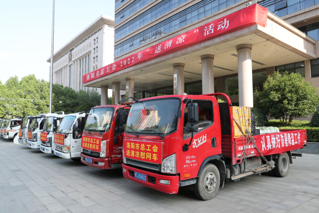为做好常态化疫情防控形势下高温作业和高温天气作业劳动保护工作,维护广大职工(农民工)的劳动健康权益,洛阳市总工会此次共筹措20万资金用于“送清凉”活动,采购西瓜、饮料、毛巾等防暑降温物资,由市总工会领导带队分11组,分赴新伊高速建设项目、洛阳市文化中心建设项目、洛阳市快递行业工会联合会等12个单位(项目)走访慰问,并在市工人文化宫、市职工活动中心设置“爱心冰柜”,为在酷热高温中辛勤工作的环卫工人、交警、外卖小哥等户外劳动者送上一份来自工会组织的关爱。