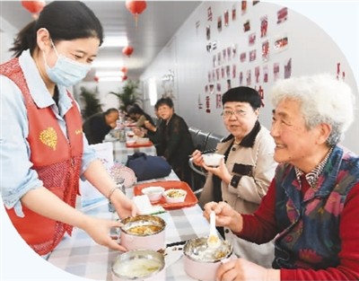 在安徽省亳州市谯城区薛阁街道马园社区老年食堂,老人们正在享用午餐。张延林摄(人民视觉)