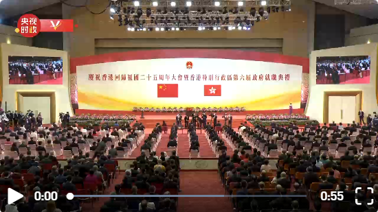 原标题:独家视频丨庆祝香港回归祖国25周年大会举行 现场奏唱国歌