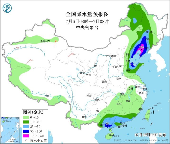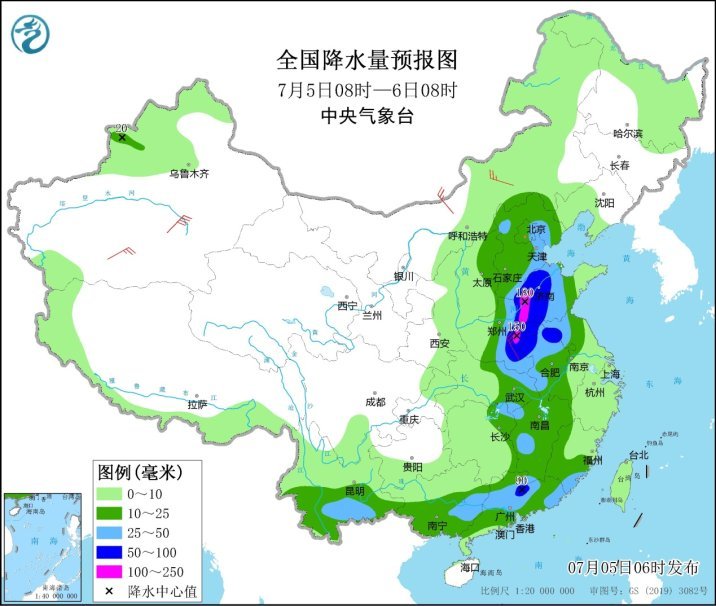 预计今天,北京东部、天津、河北东部和西北部、山东中西部、河南中东部、安徽北部和西部、江苏北部、湖北东北部、湖南东北部、江西西部和南部、广东北部和东部、广西东部、云南南部等地的部分地区有大到暴雨,其中,山东西部、河南东部等地局部地区有大暴雨(100~180毫米)。上述部分地区伴有短时强降水(最大小时降雨量20~50毫米,局地可超过70毫米),局地有雷暴大风或冰雹等强对流天气。今晨中央气象台继续发布暴雨蓝色预警。